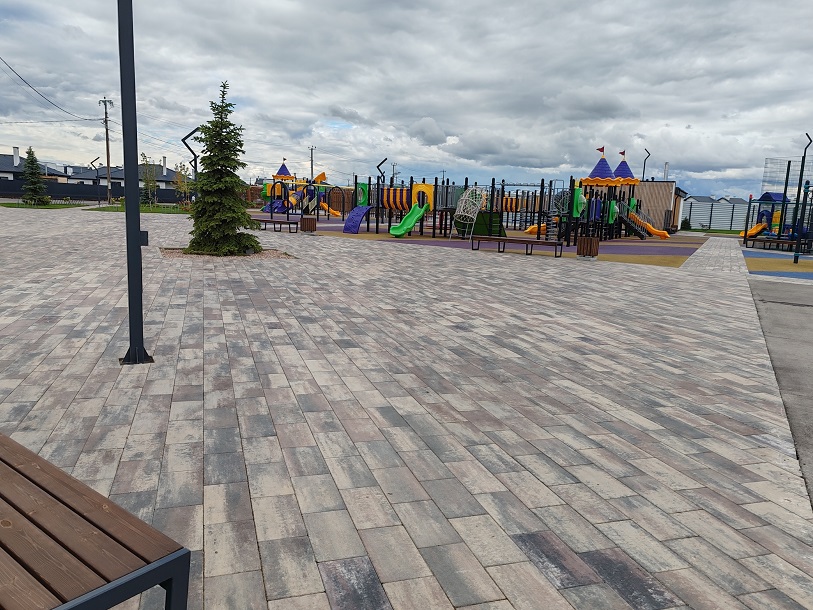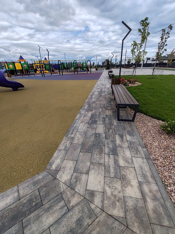Центральная площадь ЖК "Флора", теперь стала настоящим украшением района. Для мощения площади застройщик выбрал тротуарную плитку МАНГ серии "Колормикс", форму "Модерн" и цвет "Умбра".