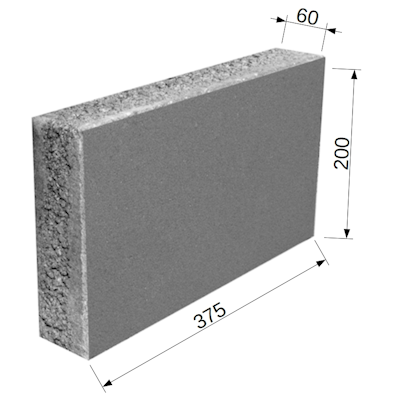 Прямоугольная размерность 375x200 мм и надежная толщина 60 мм обеспечивают прочное и устойчивое покрытие, не теряющее своей актуальности. Инновационная двухслойная конструкция (лицевой слой из цветного бетона 6 мм + основа из керамзитобетона 54 мм) объединяет финишную облицовку с эффективной термо- и шумоизоляцией, превращая ваш дом в образец современной эстетики и энергоэффективности.