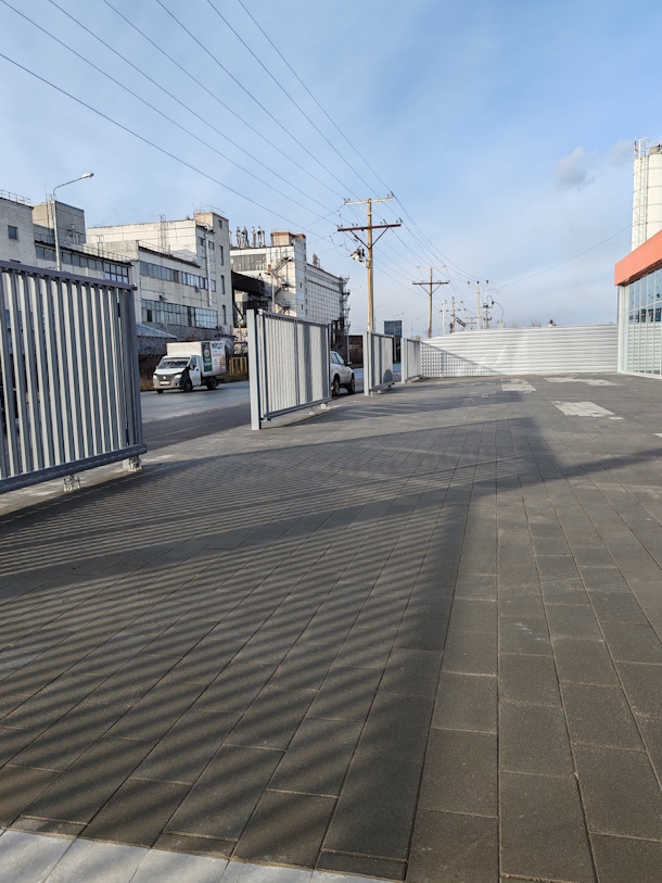 Монохромная палитра: Классический серый цвет был выбран не случайно. Он отражает профессиональную сущность «Евробетона» — это цвет фундаментальности, стабильности и современного подхода. Такой выбор превращает территорию в элегантный и сдержанный фон, где главным героем выступает безупречное качество исполнения.