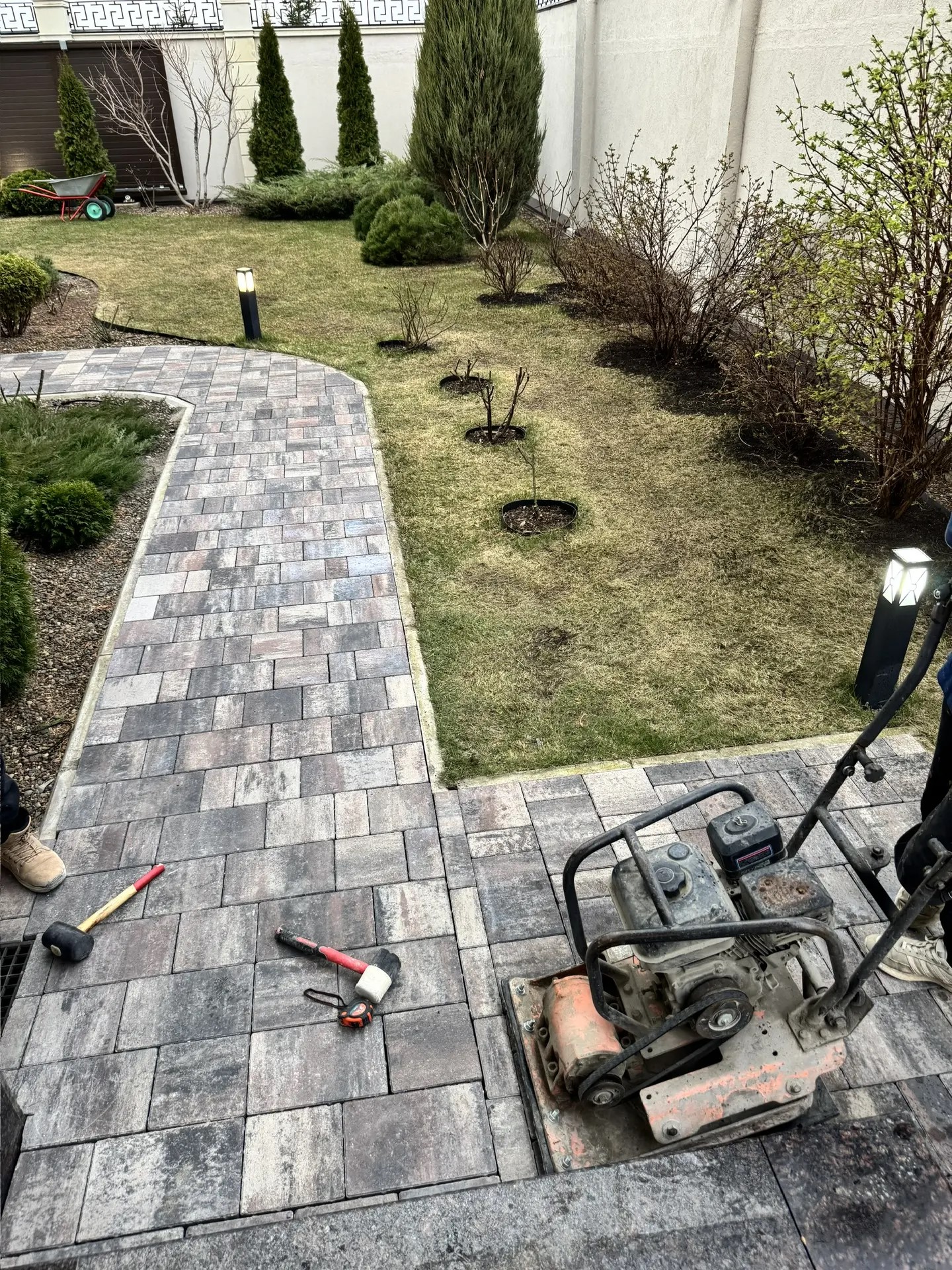 Мощение выполнила профессиональная бригада укладчиков. Особое внимание уделили подготовительному этапу: